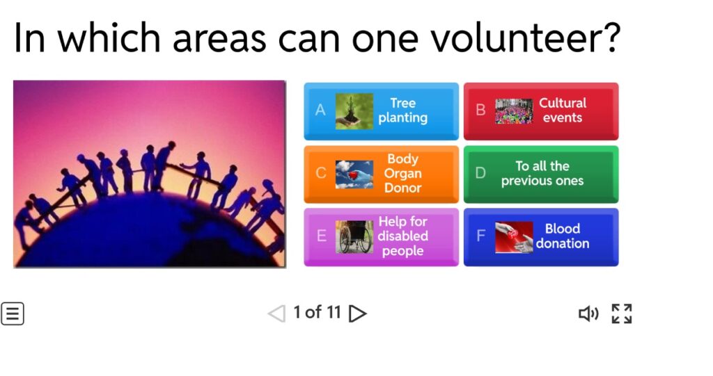 Creation of a quiz game so that students could test the knowledge they gained from their participation in the volunteering program. They played the game with great enthusiasm and recommended it to their friends.