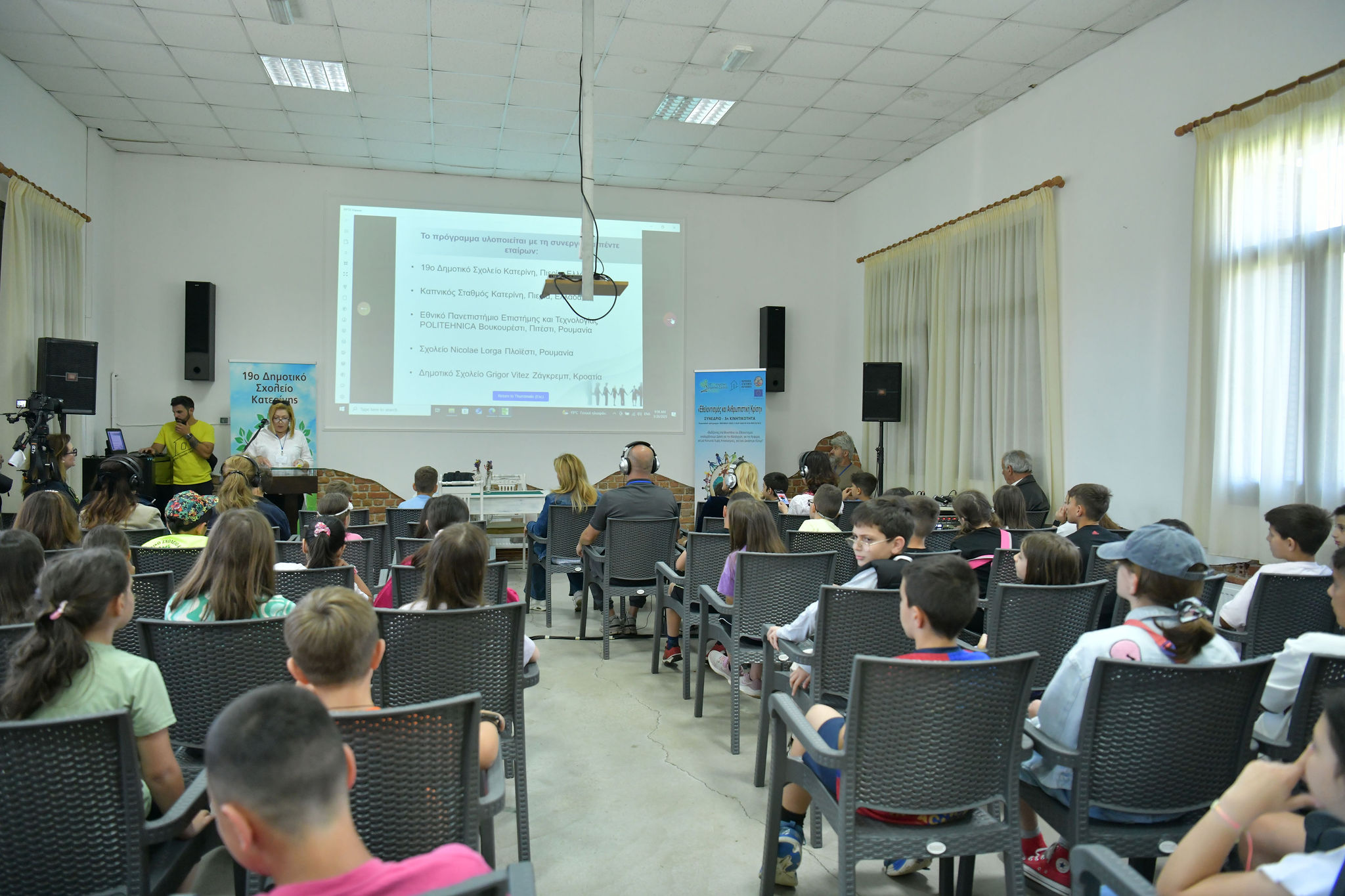 The day began with a welcome address by the School Principal, Mrs. Zoi Koutsoura, followed by a presentation by Mrs. Thomi Margariti showcasing all the activities and educational materials produced over the two-year implementation of the Erasmus+ project “Walking the Paths of Giving.”